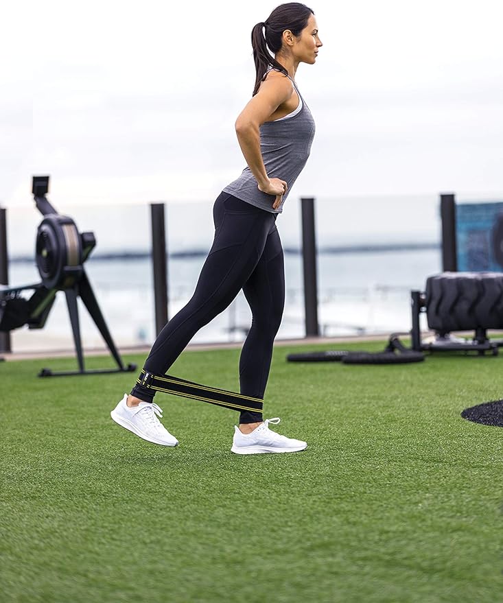 The thinner bands are typically to be worn around the ankles for longer stride movements but can also be placed around the wrists for shoulder activation.
